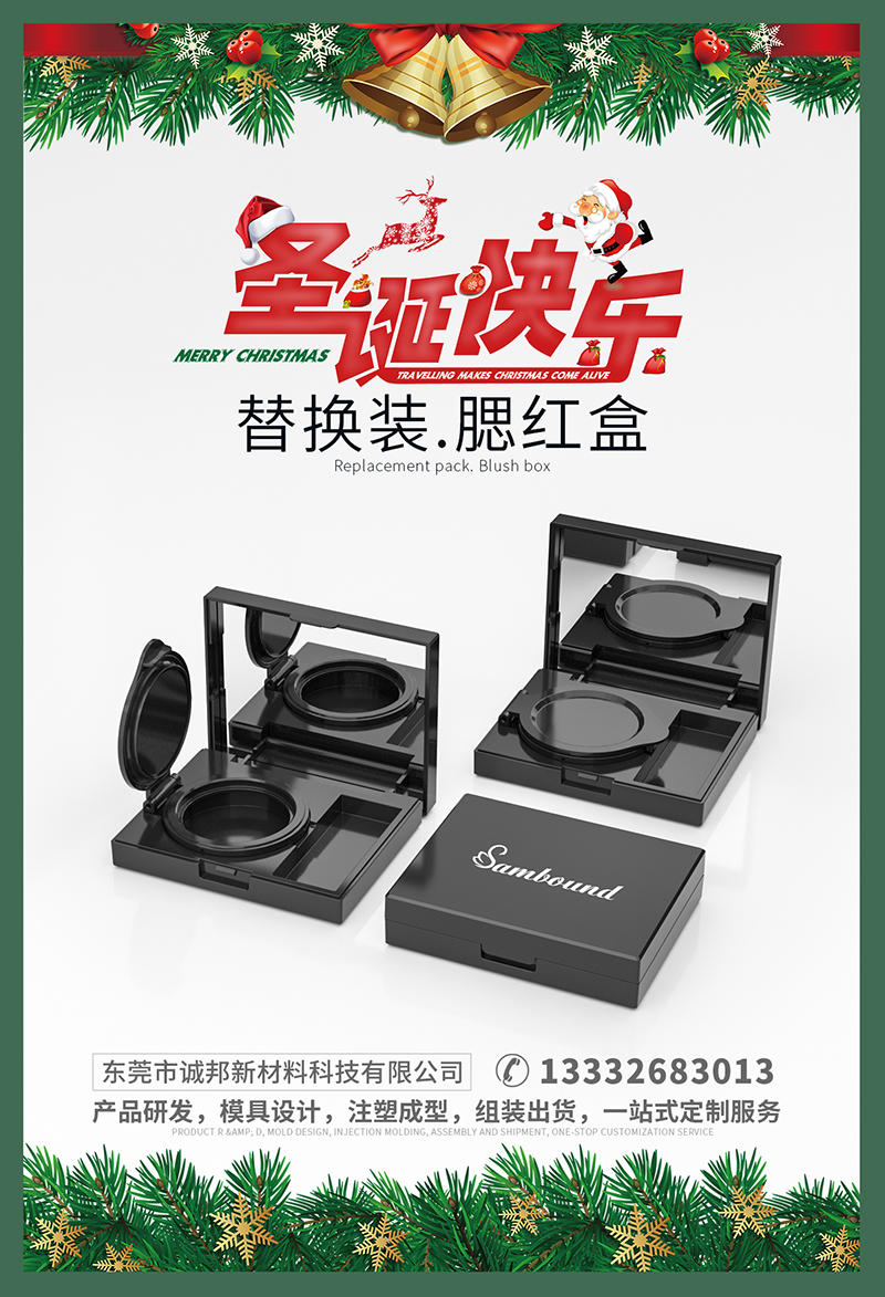 在此,東莞誠邦新材料科技有限公司祝大家度過一個(gè)美好的圣誕節(jié)。我們誠邦開模注塑幾千款彩妝包材:如口紅管、眼影盤、睫毛膏管、唇彩管等各式各樣的包裝,服務(wù)國內(nèi)外各大品牌客戶,產(chǎn)品遠(yuǎn)銷歐美、東南亞等地區(qū),包材得到大家的一致喜愛和認(rèn)同。