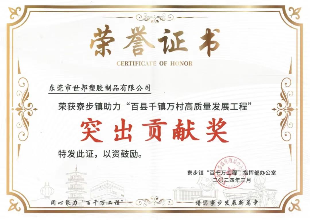 1.東莞市世邦塑膠制品有限公司。廠房面積27000平方米,為高端品牌提供從產(chǎn)品設(shè)計(jì)、精密模具制造注塑成型與組裝、售后服務(wù)為一體整套解決方法。2024年榮獲寮步鎮(zhèn)助力“百縣千政萬(wàn)村高質(zhì)量發(fā)展工程”突出貢獻(xiàn)獎(jiǎng),獲得轉(zhuǎn)型升級(jí)示范企業(yè),國(guó)家高新技術(shù)企業(yè),并通過(guò)了ICTI國(guó)際玩具協(xié)會(huì)的社會(huì)責(zé)任認(rèn)證sedex、 IS09001質(zhì)量管理體系認(rèn)證、SCAN反恐認(rèn)證、迪士尼認(rèn)證、3C及NBCU環(huán)球影視授權(quán)等,公司客戶遍布全球,與眾多知名品牌緊密合作,如:三星、小米、小熊、OPPO、華為、Epoch等。