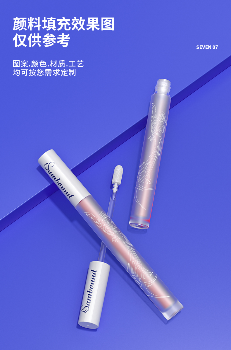 細(xì)長漸變磨砂唇釉管,3 5ml容量,表面噴漸變磨砂,手感好,可以定制logo顏色及表面處理的化妝品包材定制廠家