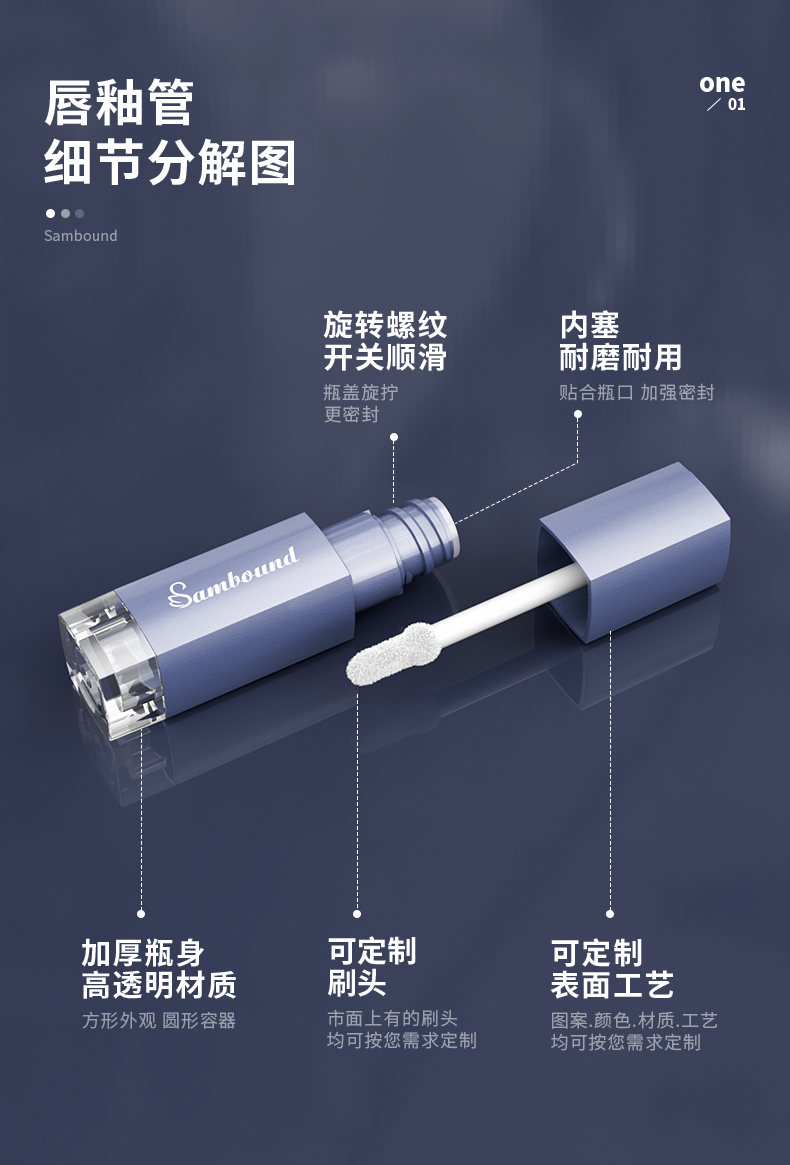 方形迷你唇釉管空管4ml唇彩管特點(diǎn):旋轉(zhuǎn)螺紋開關(guān),順滑耐磨耐用,采用PETG瓶身,ABS瓶蓋。誠(chéng)邦化妝品廠家可定制logo和顏色