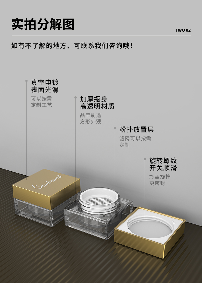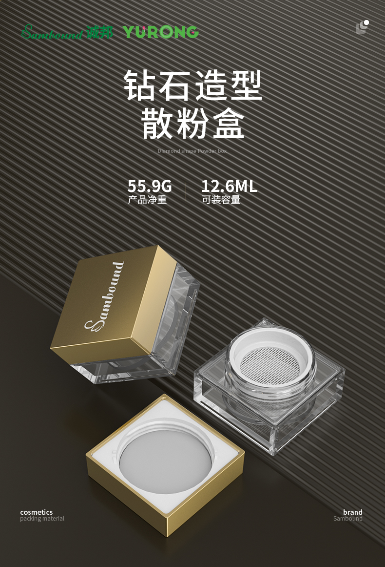 化妝品包材注塑廠定制方形散粉盒,12 6ml,可定制logo、顏色