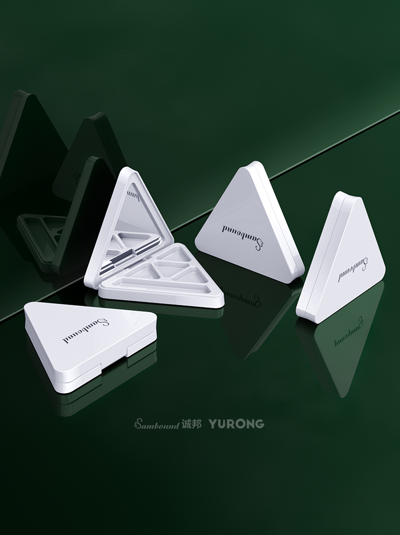 這款三角形磁吸眼影盤特點(diǎn):獨(dú)特的三角形外觀、磁吸開關(guān)設(shè)計(jì)、可定制logo圖案