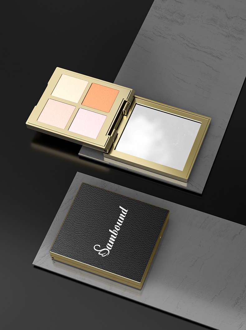 定制四格皮紋蓋眼影盤空盒包裝表面采用皮紋蓋,內(nèi)部金色電鍍更顯奢華。