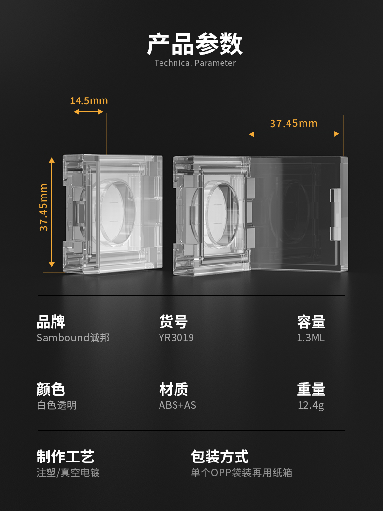 小透明單色空眼影盒包裝定制,小巧方便攜帶,1 3ml容量,兩種內(nèi)格選擇