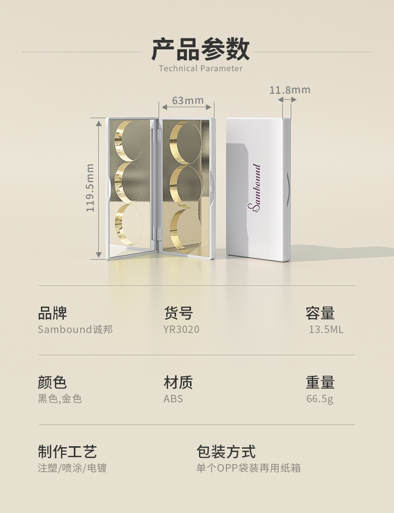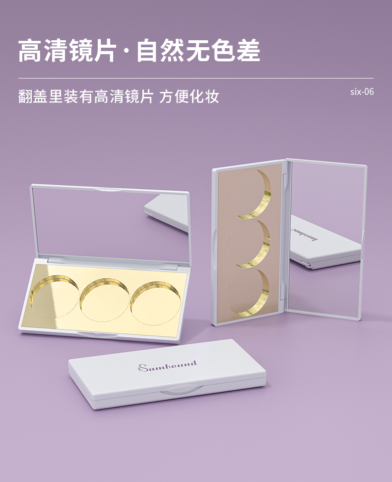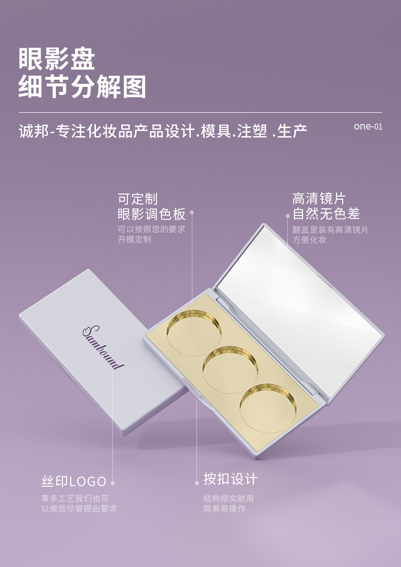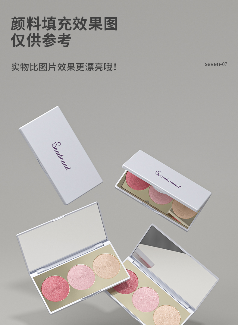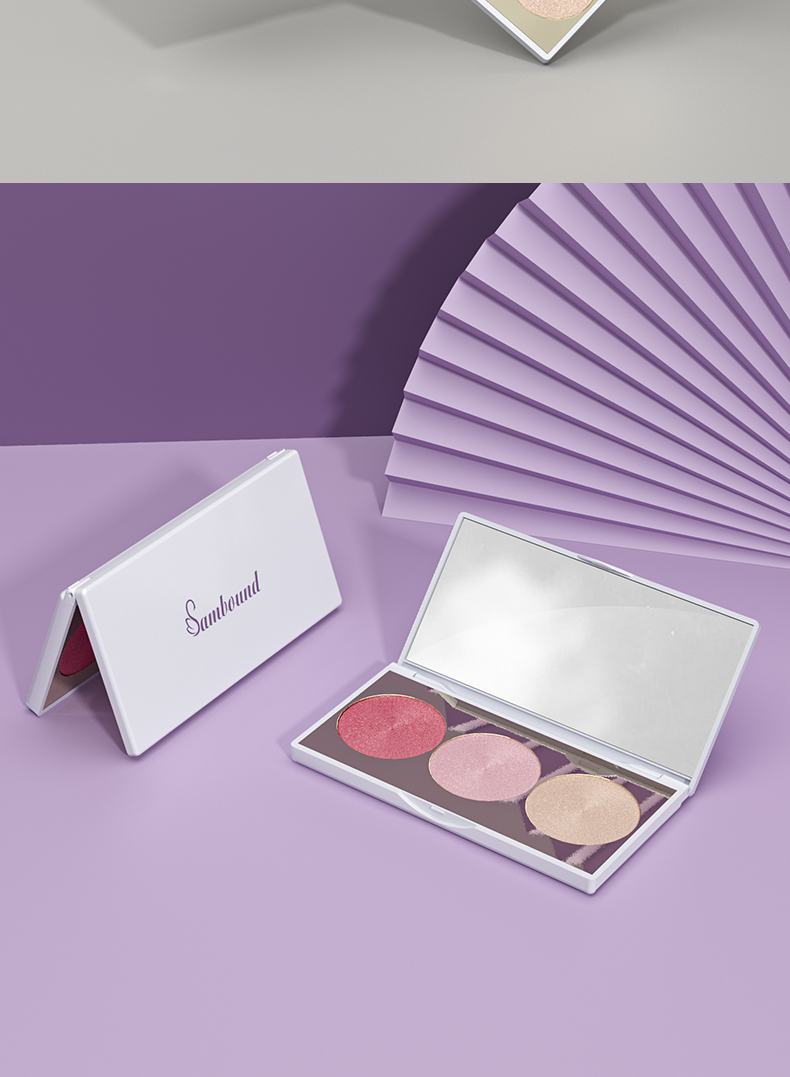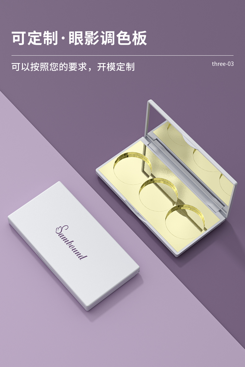 眼影盤包材特點(diǎn):高光修容鼻影3色圓形眼影一體盤,采用電鍍色,也可定制顏色和logo,免費(fèi)提供樣品
