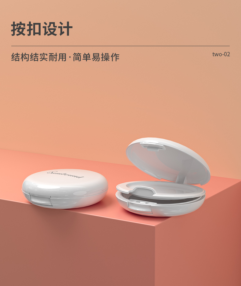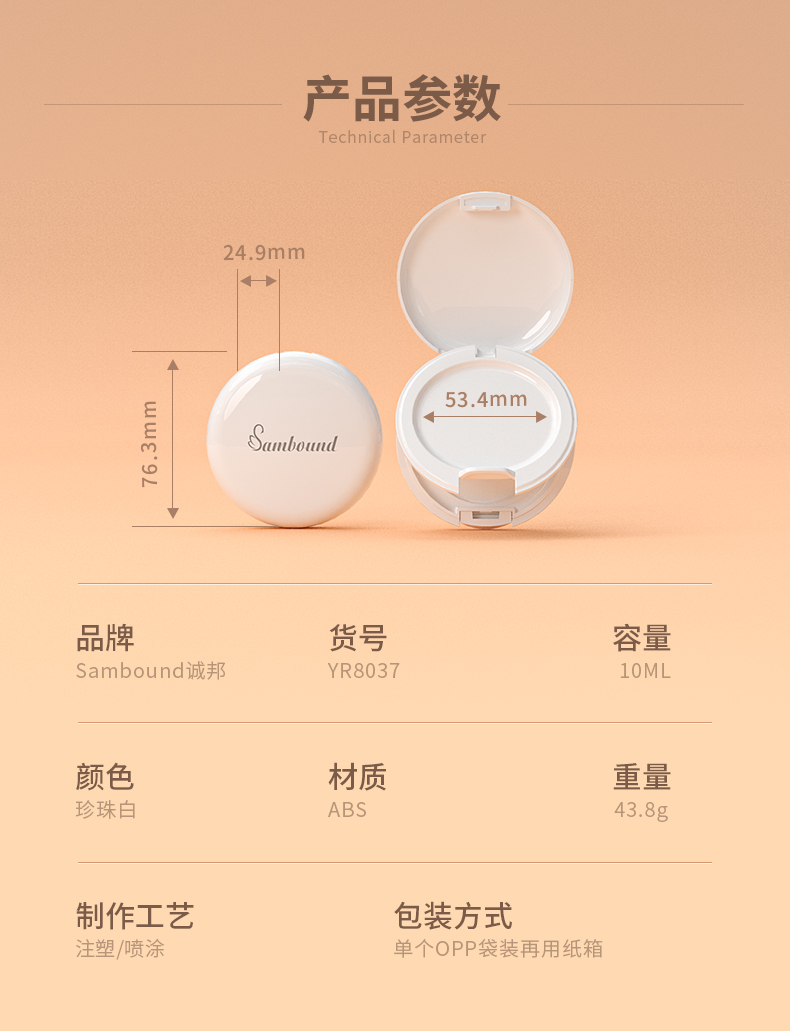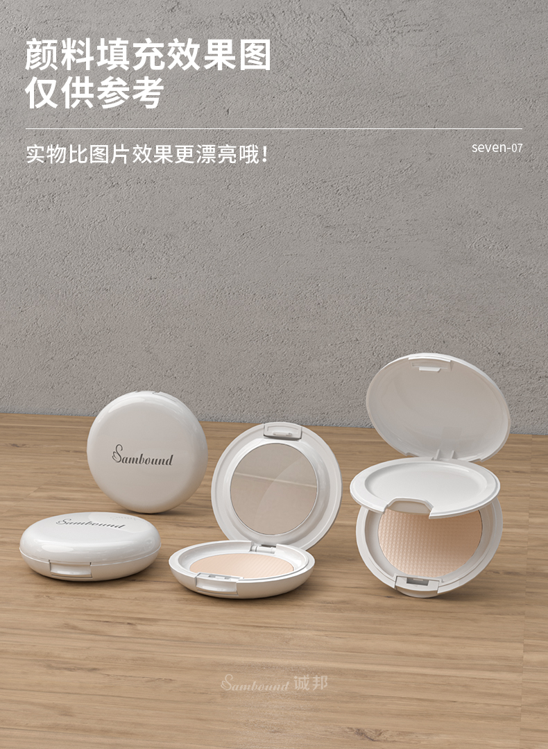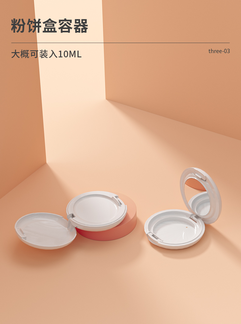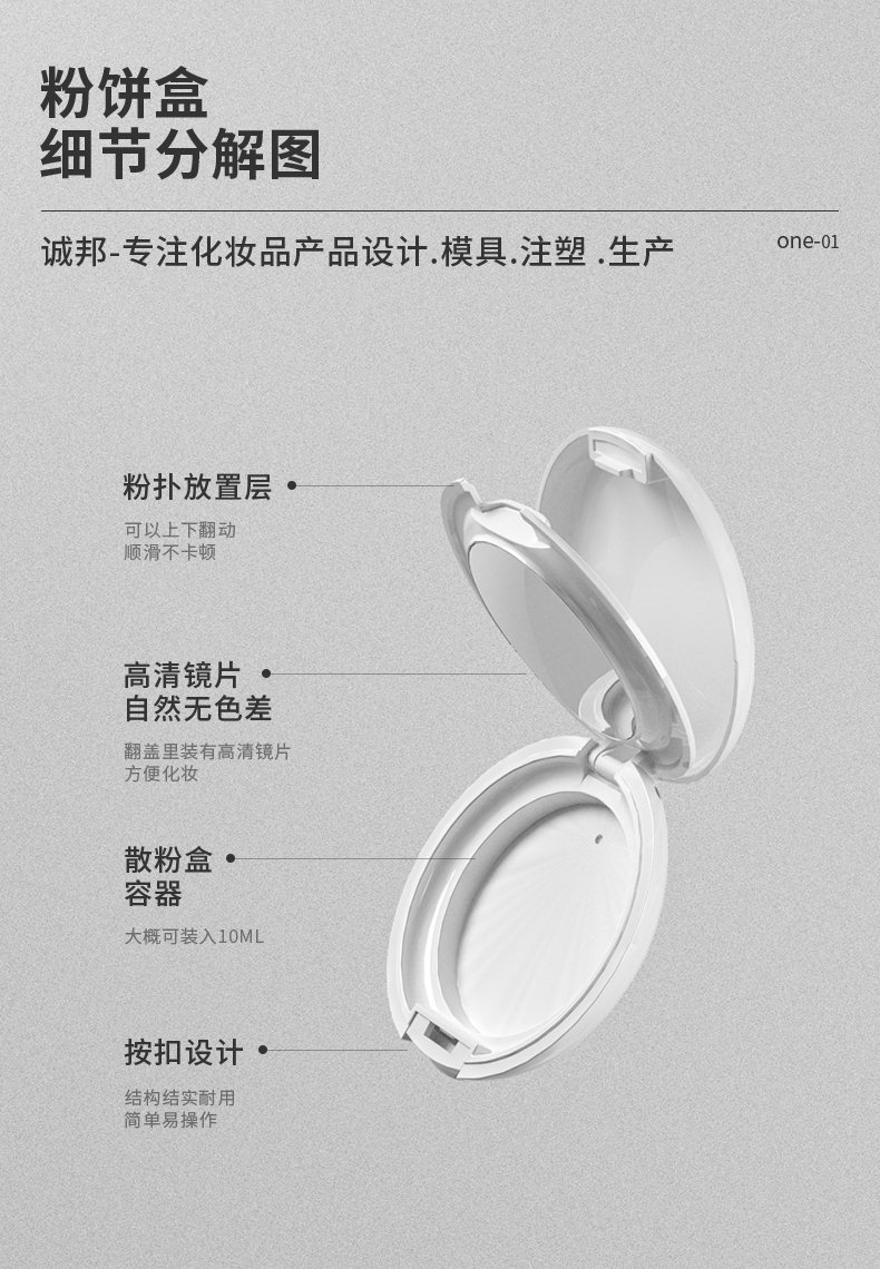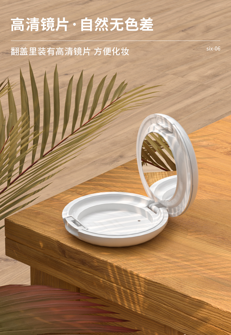 這款帶粉撲層粉餅盒,誠(chéng)邦圓形空的粉餅盒氣墊盒空盒簡(jiǎn)約BB霜盒注塑加工廠,可以為您定制logo顏色,該產(chǎn)品內(nèi)置高清化妝鏡,10ml容量