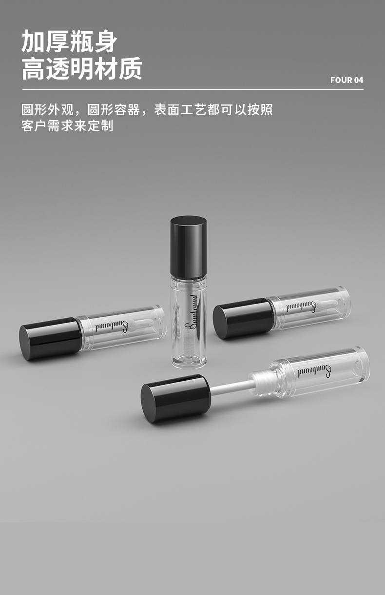 這款透明唇釉管4 7ml,可以定制顏色、絲印、注塑、logo以及其他的表面處理,誠邦化妝品包材注塑廠家也可以承接開模定制服務(wù)。