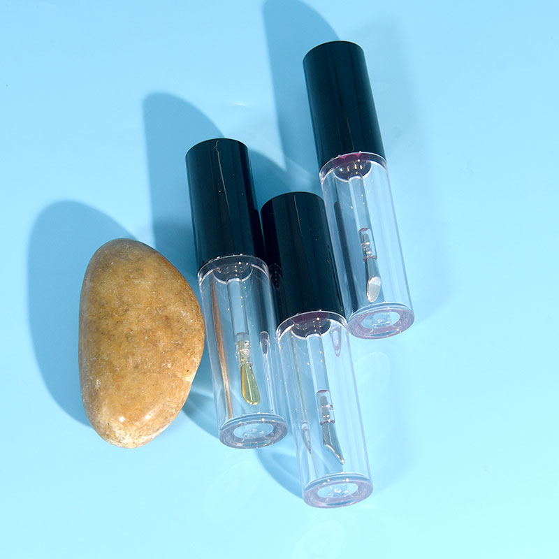 廠家批發(fā)圓形PET材質(zhì)5ml唇釉管帶小馬蹄型鋅合金金屬刷頭唇彩管
